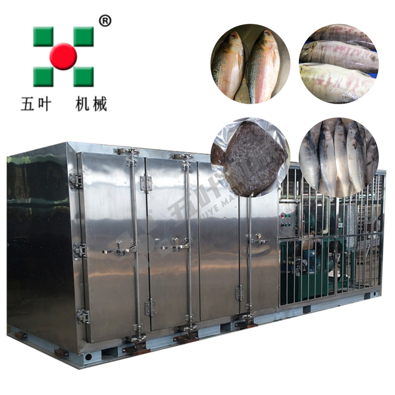 This Commercial Plate Freezer delivers efficient freezing for Golden Pomfret. Commercial Plate Freezer features custom-sized aluminum plates that ensure full-surface contact with the flat fish body. The unit is built with an all-stainless steel shell and doors, complemented by a galvanized steel base frame. High-density polyurethane insulation ensures energy efficiency, making it a robust and reliable solution for golden pomfret processing lines.