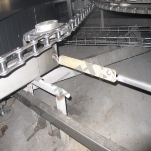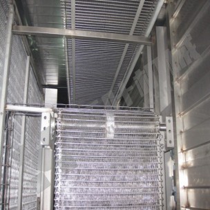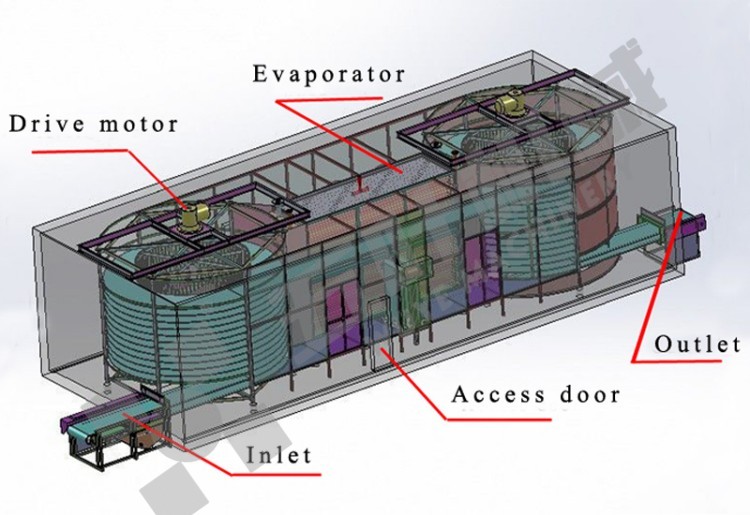 The infeed and outfeed sketch maps of the WSL double of spiral freezer.