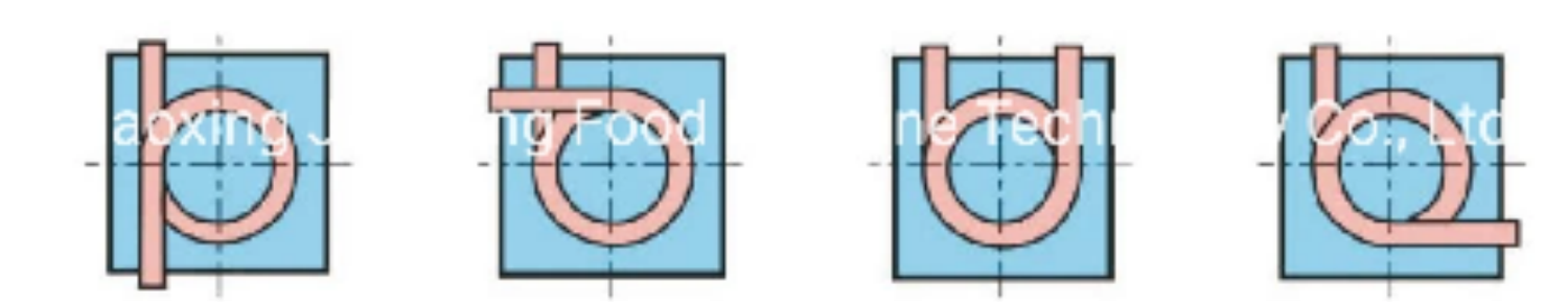 The infeed and outfeed sketch maps of the DLD single of spiral freezer.